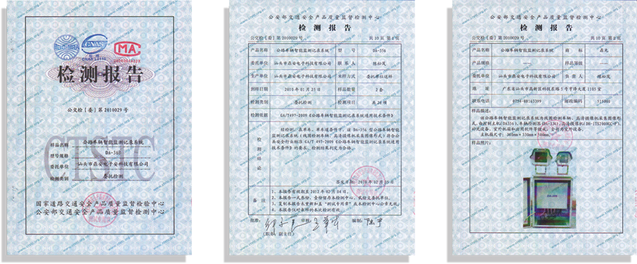 具有公安部檢測中心出具的《公路車輛智能檢測記錄系統(tǒng)》檢測報告、《機動車測速儀》