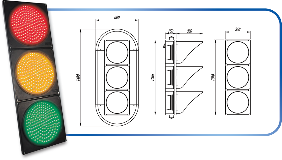 鼎光 交通信號燈采用LED光源,使用進口芯片四元素超高亮度發(fā)光二極管(LED),具有亮度強,使人易 于識別,并且具有壽命長、節(jié)能效果好;超薄結(jié)構(gòu)設計,外形美觀,工藝精細,便于多種組合安裝;透光鏡片 的外表面采用傾斜面設計,不易積塵;外殼采用聚碳酸酯(PC)材料與硅橡膠密封件,具有防塵、防水、阻燃、 抗老化特點,使用壽命長。